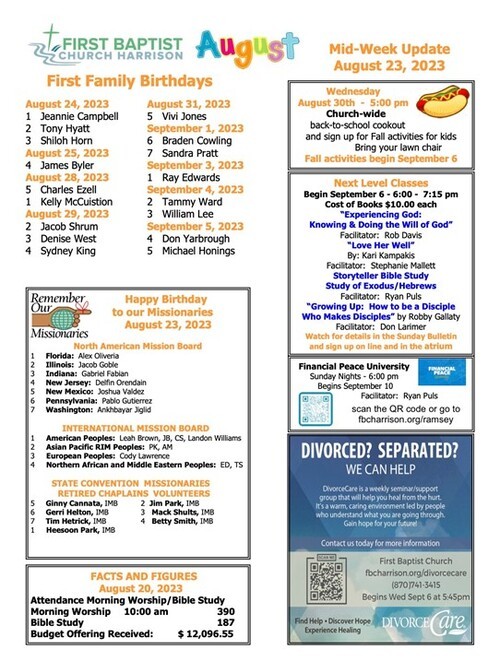 Each week, Ms. Betty makes sure that we have access to all the information we need to be "in the know" about how the church is aiming at God's work. Check it out below and come join us!